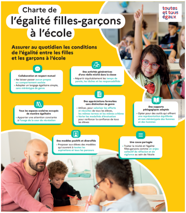 Depuis cette rentrée, les enseignants doivent participer à un atelier de sensibilisation des professeurs aux biais de genre organisé avant le 15 septembre dans chaque école ou établissement avec pour objectifs de comprendre les inégalités d’orientation entre filles et garçons en sciences, d’identifier les stéréotypes et obstacles potentiels à la fois dans et hors du cadre scolaire, d’envisager les actions concrètes à mettre en œuvre au quotidien, et d’initier une dynamique collective au sein de l’école ou de l’établissement.